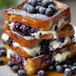 Indulge in this delightful blueberry cheesecake stuffed French toast that combines the airy satisfaction of French toast with creamy cheesecake, all bursting with fresh blueberries.