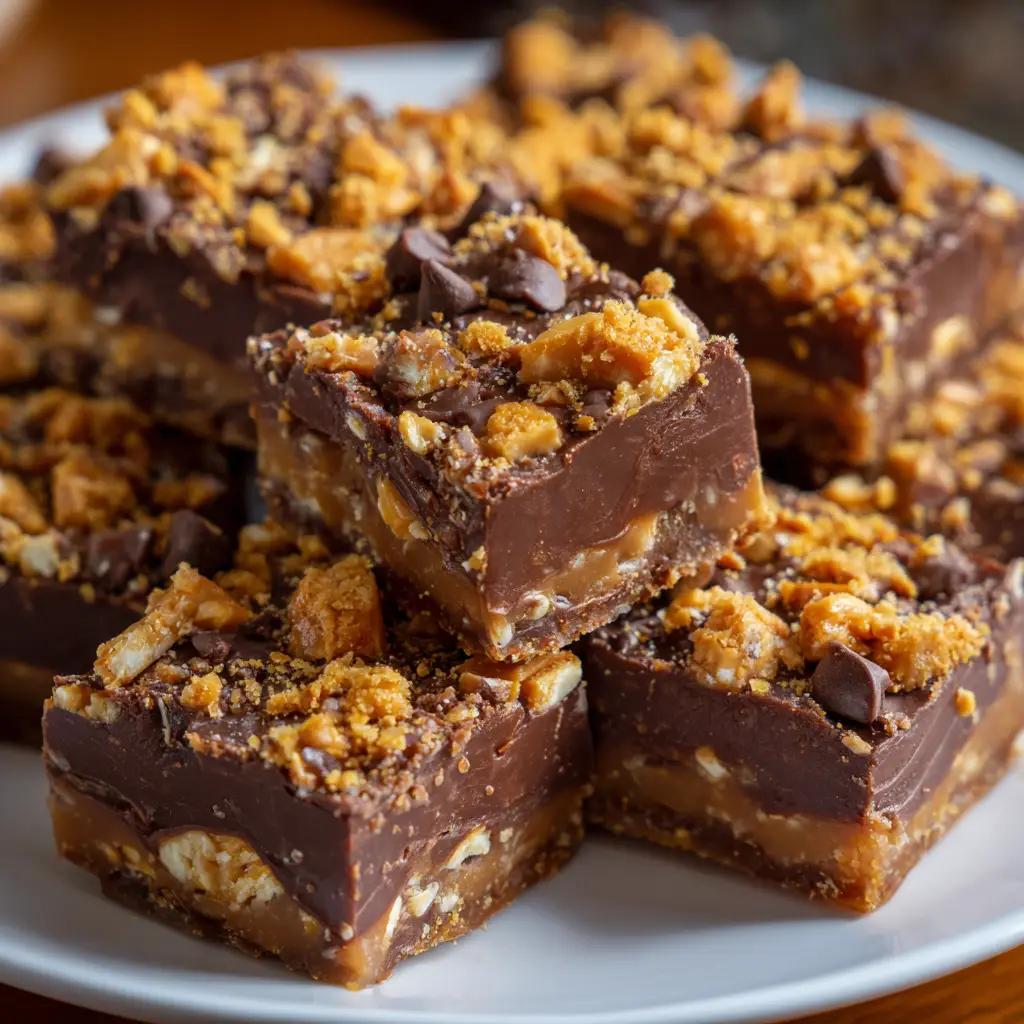 Delicious Butterfinger chocolate fudge squares that melt in your mouth, perfect for satisfying your sweet tooth.