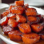 A warm and sweet centerpiece perfect for holiday gatherings, featuring caramelized sweet potatoes bathed in a rich, buttery syrup with hints of cinnamon and vanilla.