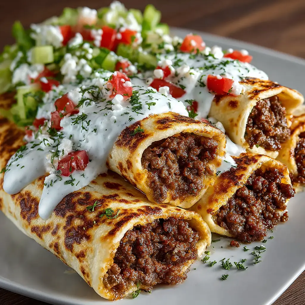 Greek Beef Wraps with Dill Feta Sauce