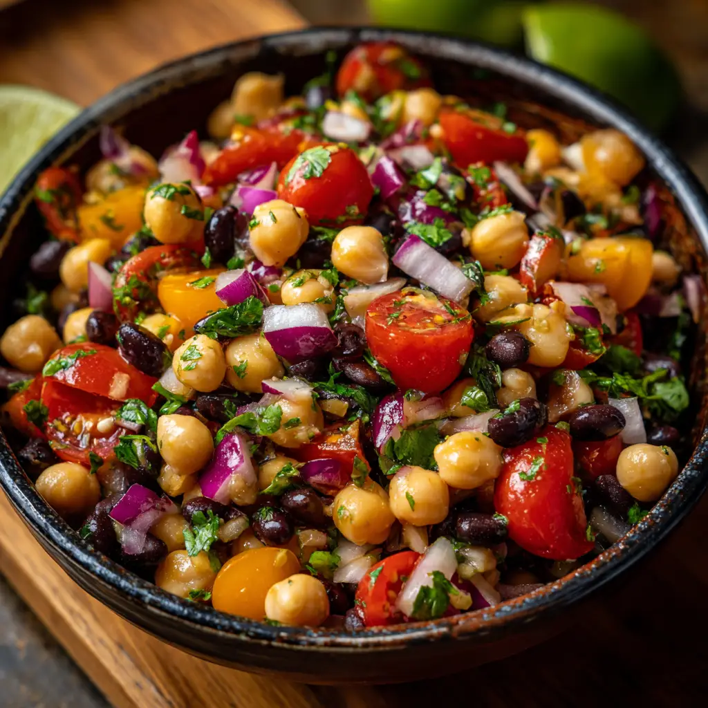 A refreshing and nutritious salad made with chickpeas and black beans, perfect for a light meal or side dish.