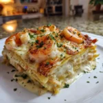 A delicious and rich lasagna layered with creamy seafood, shrimp, and crab, perfect for seafood lovers.