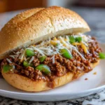 Now comes the fun part! Spoon the savory sloppy joe mixture into the hollowed-out French bread. If you’re feeling cheesy, sprinkle shredded cheese on top. Place the filled bread halves on a baking sheet and pop them in the oven for 10-15 minutes. You want the bread to be crispy and the cheese melted. Once they’re golden and bubbly, take them out and let them cool for a minute before slicing. Serve hot and enjoy!