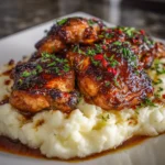 Now for the fun part—serving! Plate the chicken thighs alongside a generous scoop of smoked gouda mashed potatoes. Drizzle any remaining marinade over the chicken for extra flavor. Garnish with fresh herbs if you like. Your family will be impressed, and you’ll feel like a culinary rockstar!