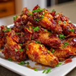 Take your marinated wings and coat them in the sriracha glaze. Make sure each wing is generously covered. This glaze is what makes these wings stand out, so don’t be shy! Place the coated wings on a baking sheet lined with parchment paper for easy cleanup.