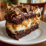 A decadent dessert combining chocolate cake, peanut butter, and Reese’s candies for a rich and indulgent treat.