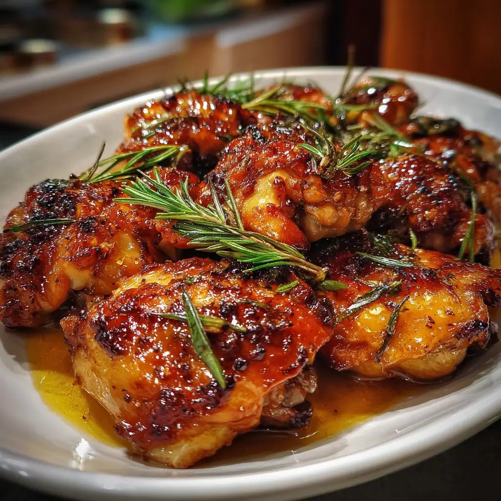 Transfer the marinated chicken thighs to a baking dish, making sure they’re evenly spaced. Pour any remaining marinade over the top. Roast in the preheated oven for 35-40 minutes. To check for doneness, use a meat thermometer; the internal temperature should reach 165°F (75°C). The chicken will be golden brown and fragrant, making your kitchen smell heavenly!