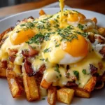 Imagine this: a comforting dish that brings together the very best of breakfast indulgence—crispy fries, melty cheese, perfectly cooked eggs, and a rich, velvety hollandaise sauce that dances on your tongue. Each spoonful unites textures and sensations, transporting you to a cozy café where the coffee is hot, and the mornings are slow. With every bite, you’ll feel a wave of happiness wash over you, reminding you that breakfast can be both a lavish treat and a satiating start to your day.